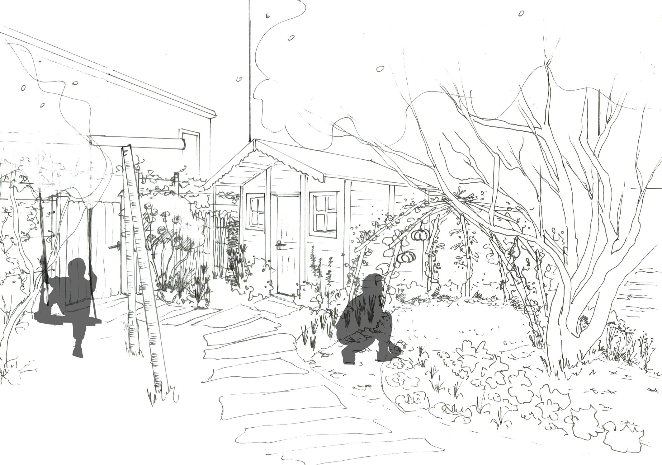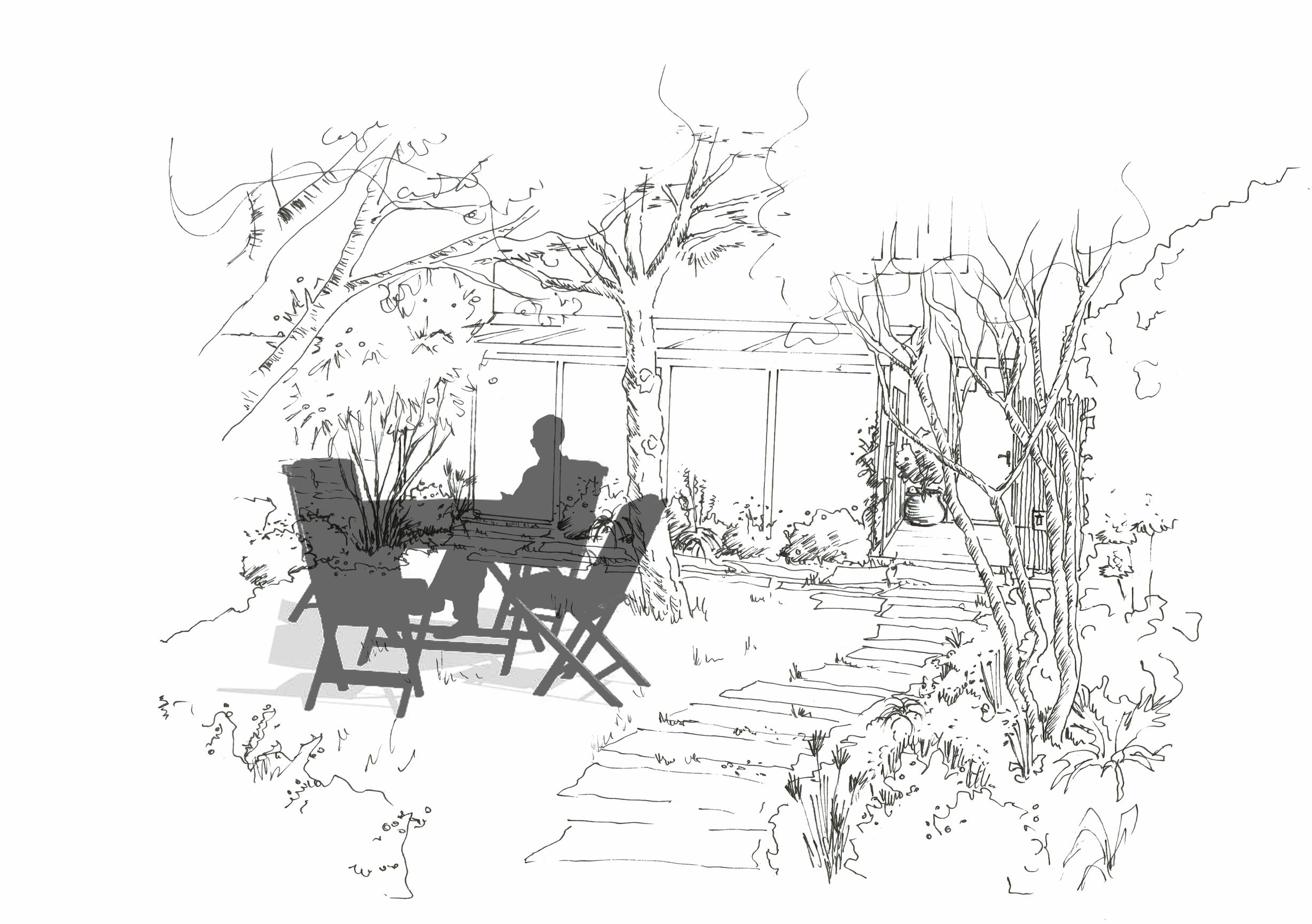 – Accompagner le bâti, ourler l’espace du jardin détente, guider la circulation.