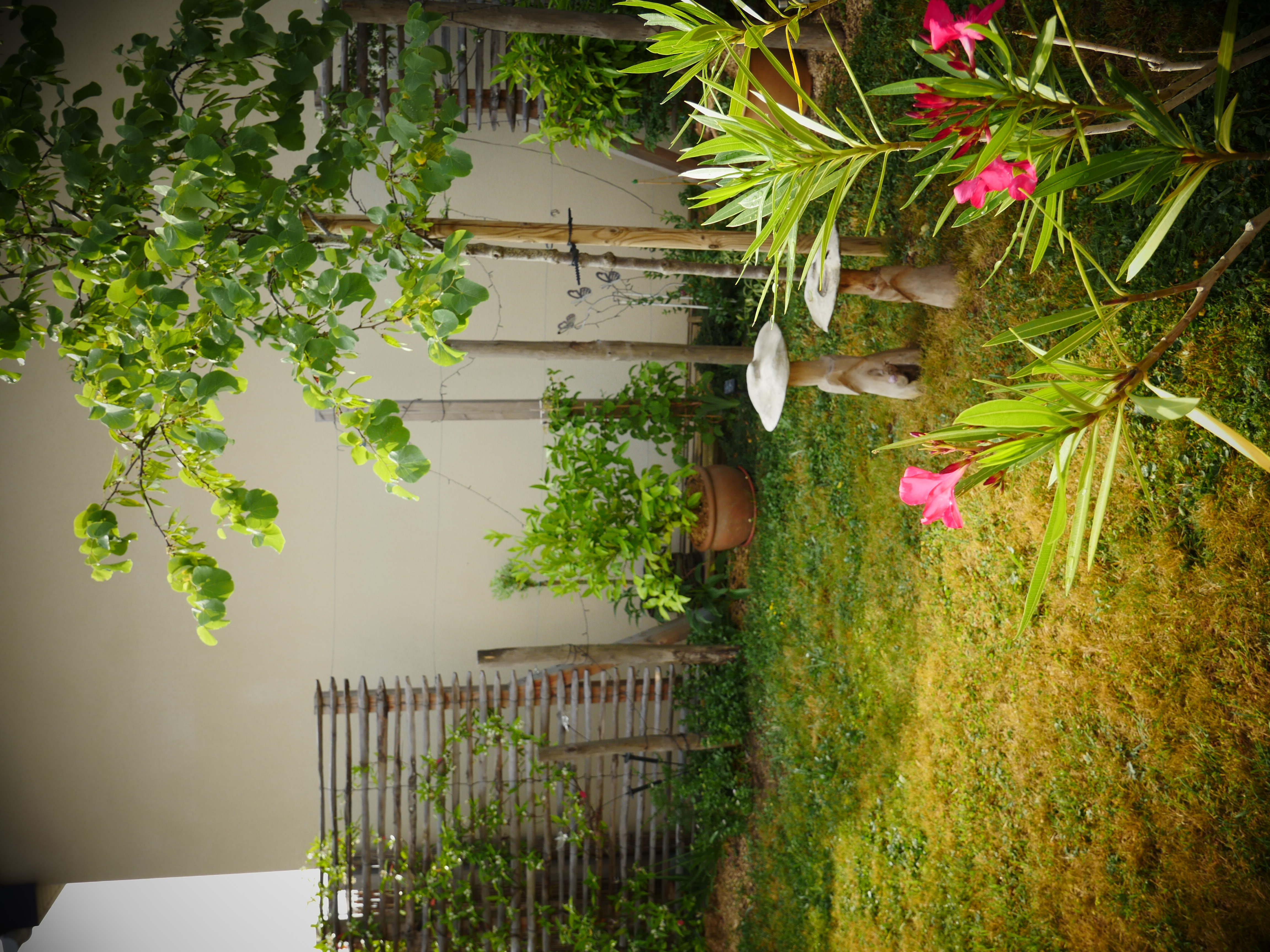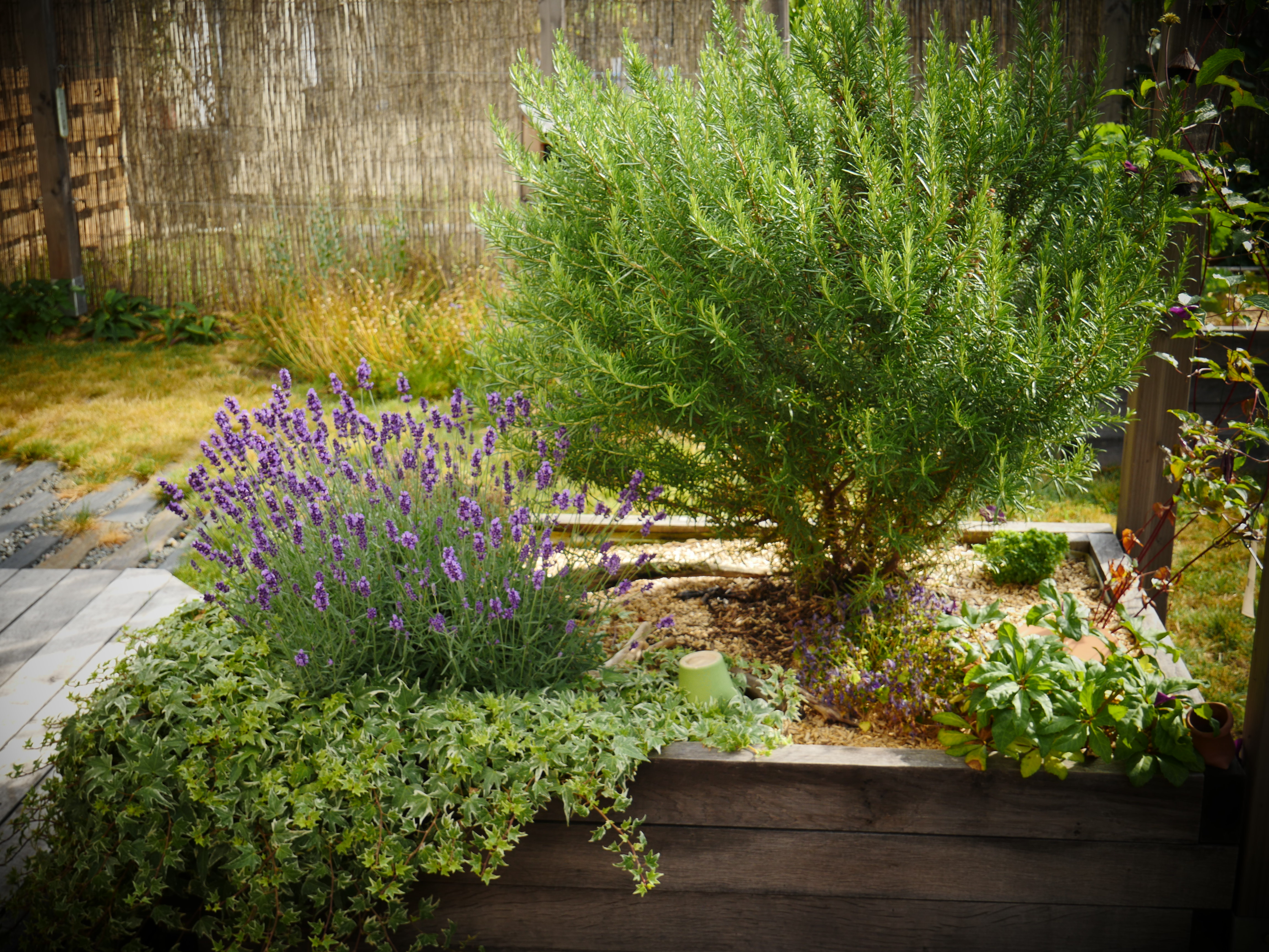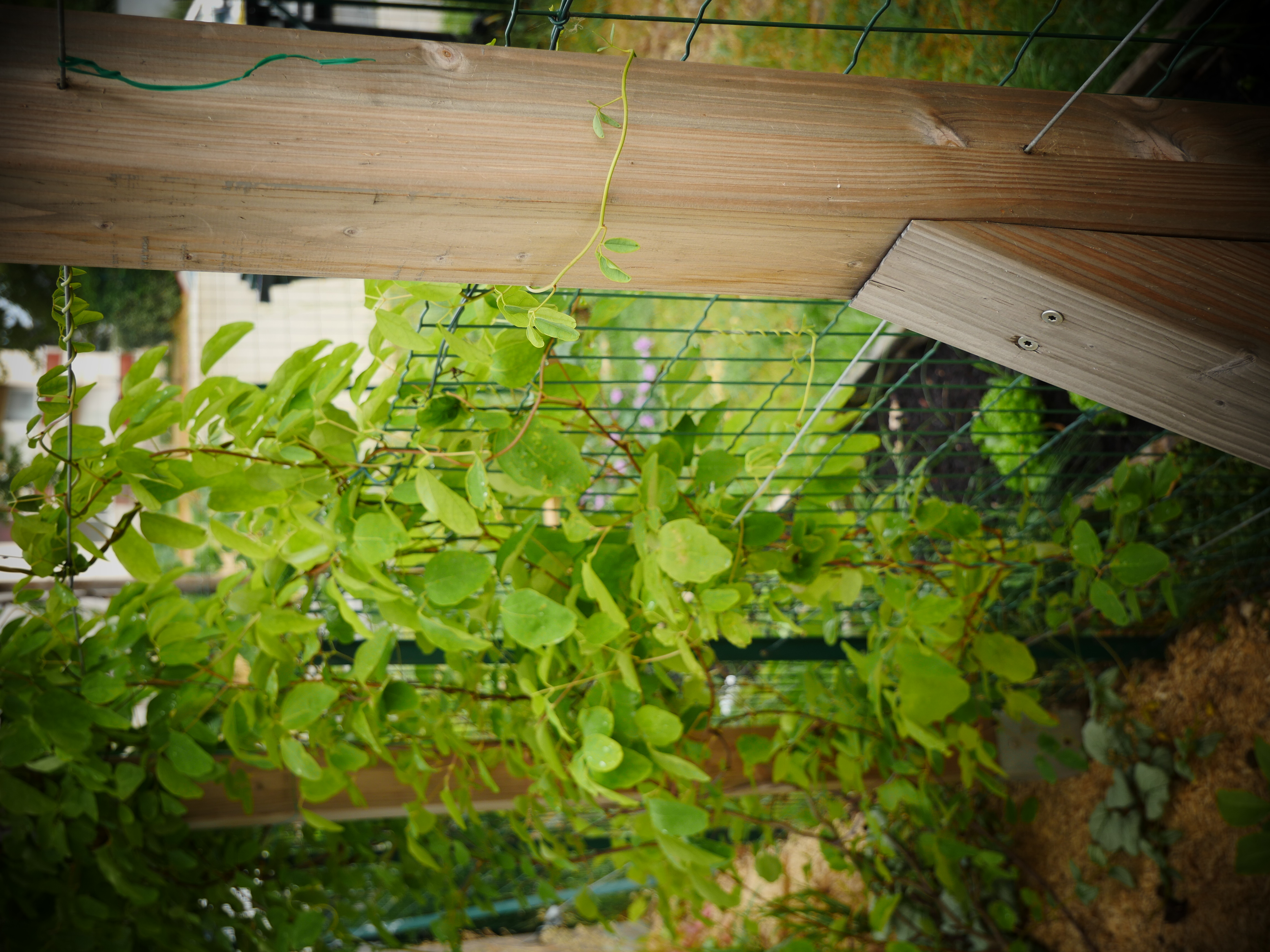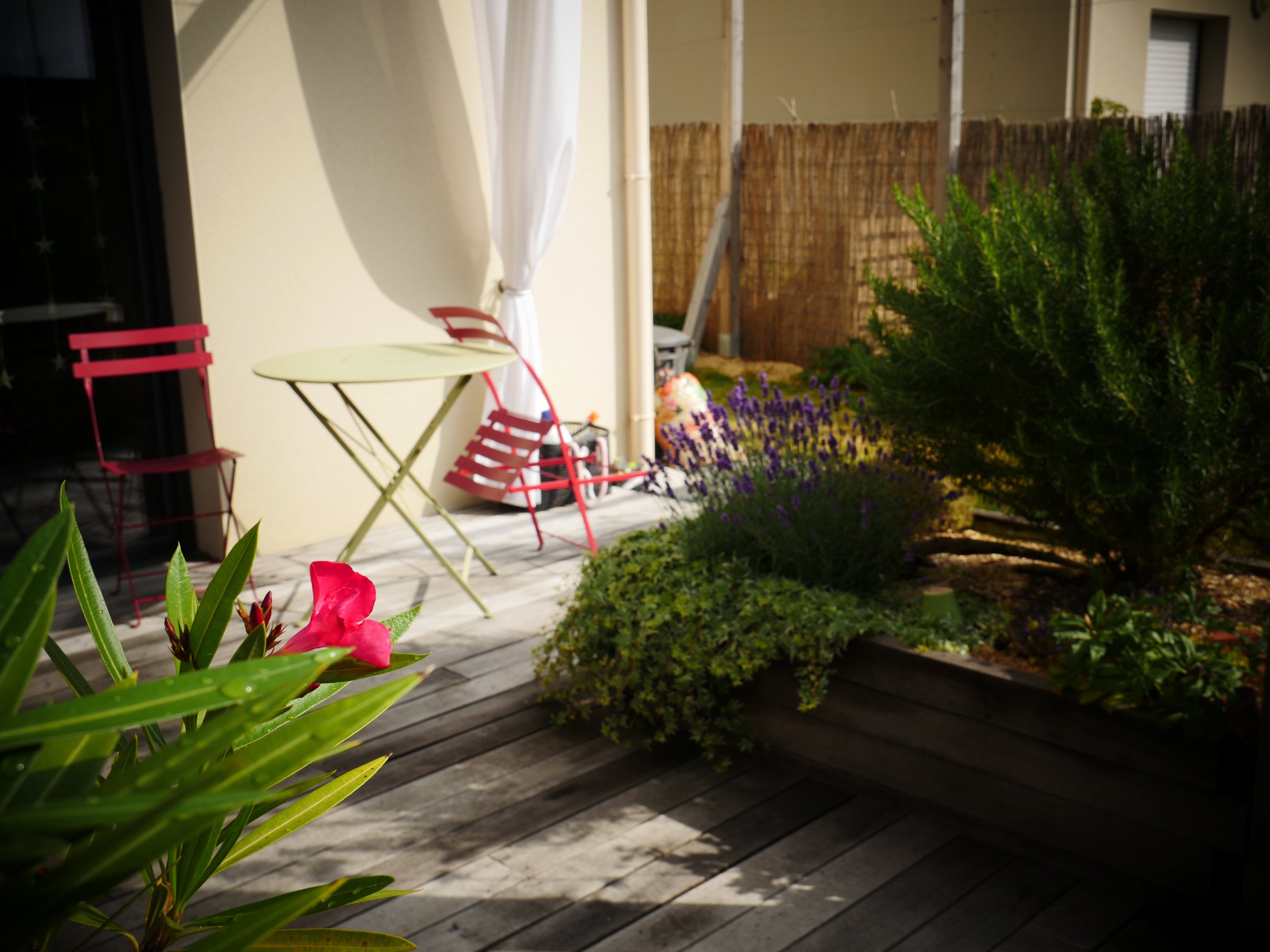 Ce petit jardin se découvre en traversant un corridor végétalisé à l’aide d’une succession d’arches en bois, cadrant une perspective vers le jardin arrière. La terrasse surmontée d’une pergola compose un espace de détente niché au coeur de la végétation. Le jardin est rythmé par des structures en bois supports de grimpantes, nichoirs et autres refuges à insectes. La note comestible de la palette végétale est soulignée par des bacs potager et des arbres fruitiers en palmettes.