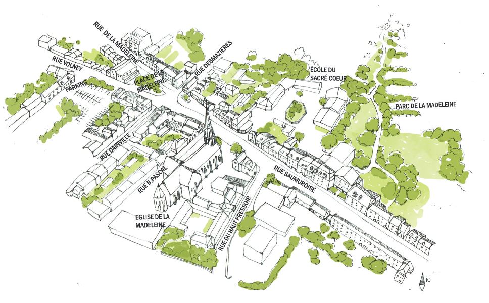 Dans le cadre du réaménagement de la Place de la Madeleine, Angers Loire Métropole nous a sollicité afin de repenser l’ensemble des espaces publics qui s’étendent de la rue Volney à la rue Saumuroise.