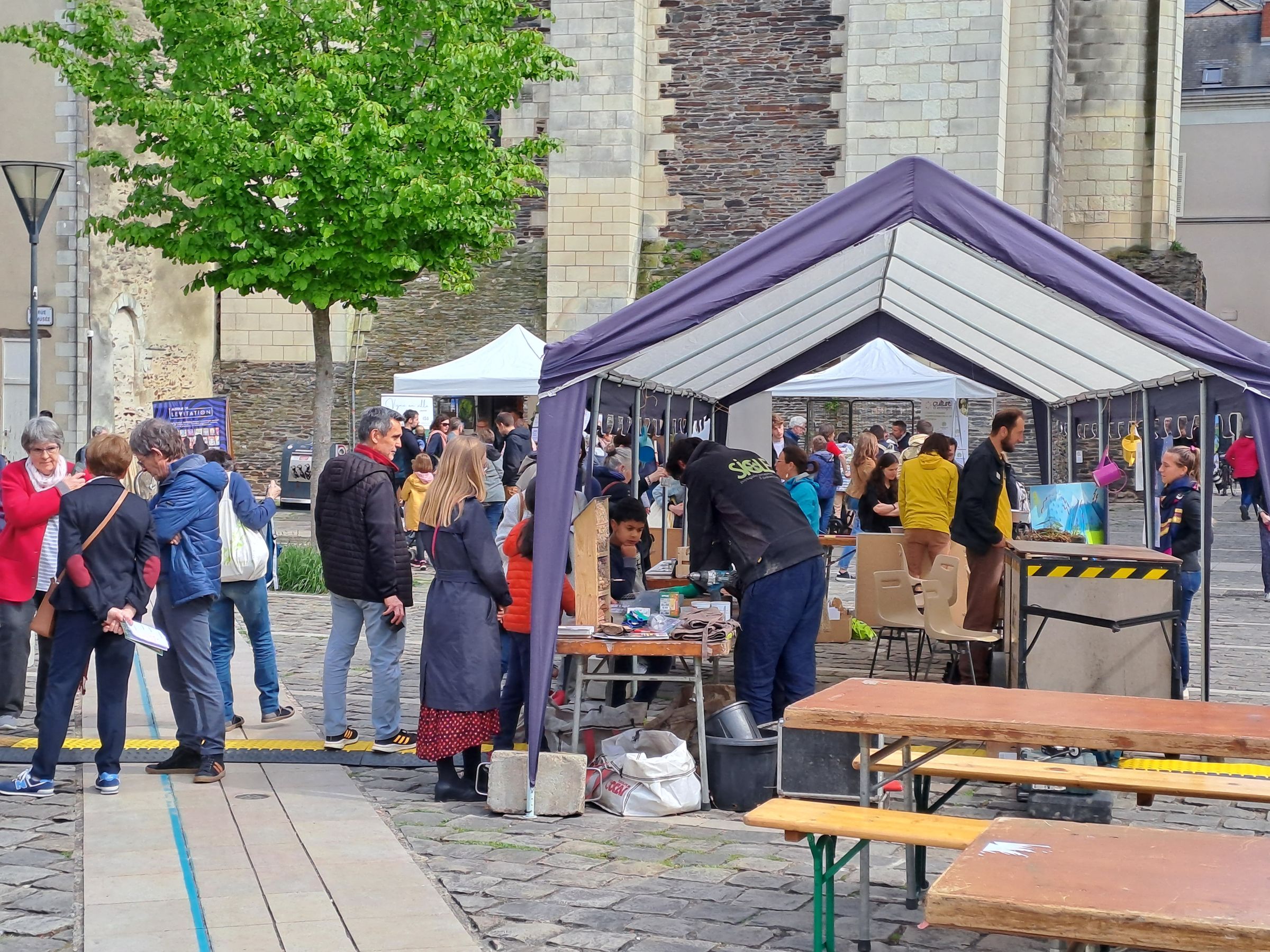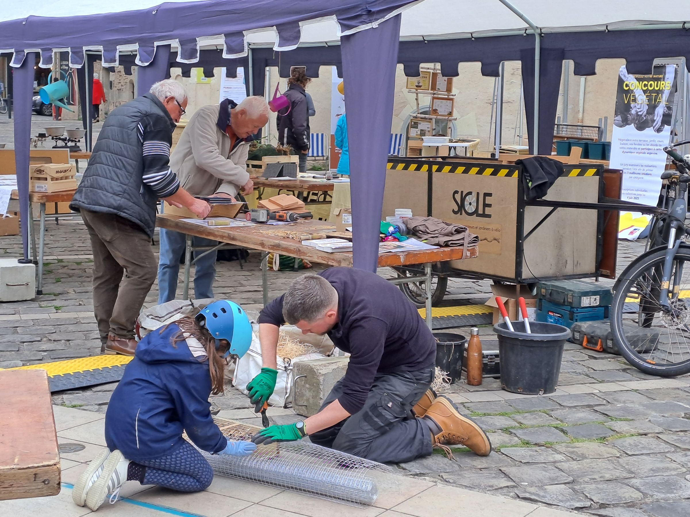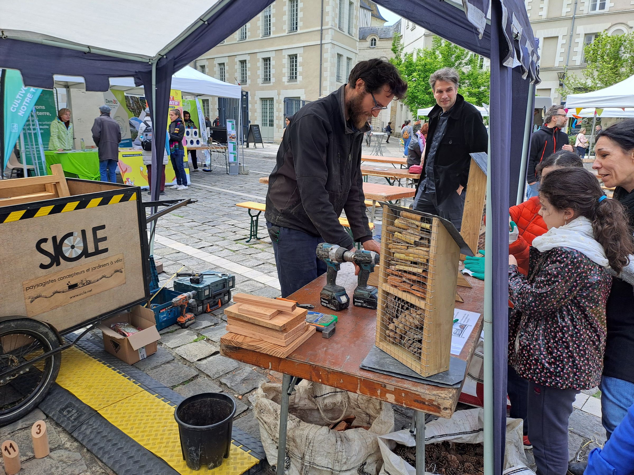 Participation au village des 48h de l’Agriculture Urbaine, organisées par MAUVE. Construction d’hôtels à insectes dans le centre ville d’Angers.
