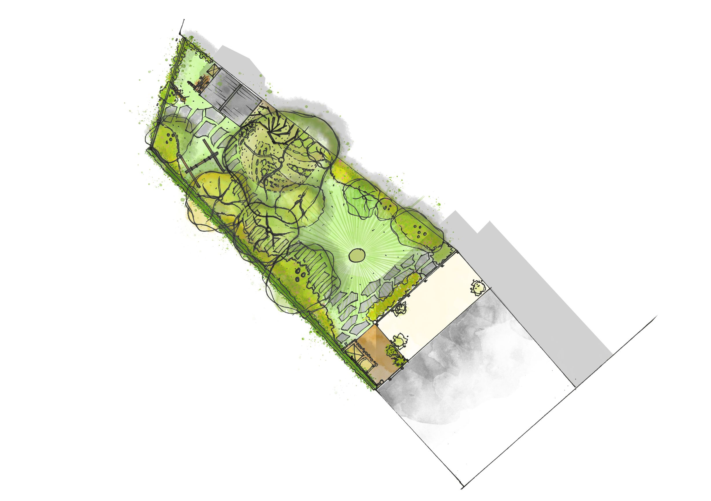 – Accompagner le bâti, ourler l’espace du jardin détente, guider la circulation.